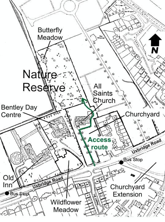 The reserve is at the back of the Bentley Day Centre in Uxbridge Road,