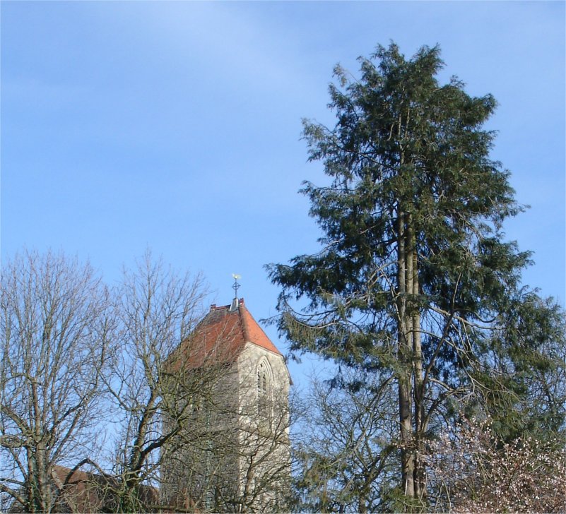 relicts of the vicarage garden. Under the trees the cow parsley is in