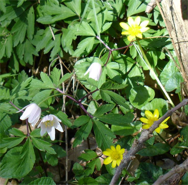 has very similar shiny yellow flowers. It comes into leaf and flowers